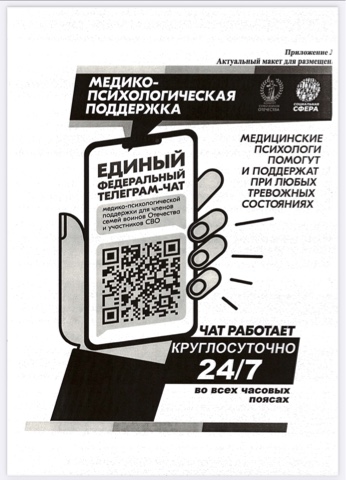Единый федеральный телеграм-чат медицинской психологической поддержки для детей семей воинов Отечества и участников СВО